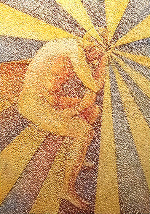 DELLA VERITA'. -L'ALCHIMIA E LA RICERCA DELLA PIETRA FILOSOFALE: L'essenza del pensiero alchemico è sintetizzato nella frase "nell'Uno il Tutto"; e nella tavola smeraldina di Ermete "Ciò che è in alto è come ciò che è in basso, e ciò che è in basso è come ciò che è in alto". La visione unitaria del Tutto implica la fondamentale unità del cosmo e e dei suoi quattro elementi (la Tetragonia di Empedocle), di conseguenza, totalità diventa sinonimo di completezza. A livello teologico l'unità del Tutto significa l'identificazione individuo-divinità. -ARNALDO DA VILLANOVA nel suo "De secretisa Naturae, stabilisce un parallelo tra la morte e la resurrezione di Cristo secondo la tradizione Cristiana, da un lato, e le due principali fasi alchemiche dall'altro: l'iniziale Nigredo che vede la morte della prima materia, cioè l'adepto e l'ultima la rubedo, che ne segna la rinascita sotto forma di pietra filosofale. ANCHE PIETRO BONO DA FERRARA (1330) vede una corrispondenza tra l'esito del magistero alchemico e la rivelazione divina; per lui, come per tutto il pensiero alchemico trecentesco, "l'Alchimia è sopra la natura e divina". -GLI ARTISTI ALCHIMISTI DEL RINASCIMENTO (Cosmè Tura, Leonardo, Michelangelo, Durer, Parmigianino, Beccafumi, Giorgione, Lorenzo Lotto, Guercino, ecc..., seguono le indicazioni di Arnaldo e Pietro.....ed io con loro. L'immortalità è conoscenza, è il riconoscimento dell'unità del Tutto. E' la consapevolezza dell'aspetto complementare e non conflittuale di ogni dualità (questo è l'insegnamento della luce Divina espressa nell'Aleph) -I FILI DELLA SPIRITUALITA' NELLA MIA ARTE SONO...:-Platone e il Timeo, lo Sefer Yetzirah, il Quarto Vangelo di Giovanni, il Terzo libro di Enoch, Arnaldo da Villanova, Pietro Bono da Ferrara, Gioacchino da Fiore e la nuova età dello Spirito, Pico della Mirandola. -LA MIA ESPRESSIONE ALCHEMICA: ....E LE MIE OPERE ISPIRATE ALLE VELATURE LEONARDESCHE (PDF) Dalle velature di Leonardo alle mie velature cesellate la distanza sembra breve. L'utilizzo di una tecnica complessa e raffinata da un senso di leggerezza e spiritualità a chi osserva l’opera grazie al rapporto che l’opera stessa instaura con la luce. La luce sfiorando la superficie della tavola lignea mette in evidenza la leggerezza dei toni e dei passaggi cromatici che sembrano velature ma in realtà sono soltanto l’insieme di bruciature e forature effettuate sulla pelle del legno a caldo (pirografo) e a freddo (dremmel) e poi unite ai pastelli colorati che vengono fissati a cera liquida. La superficie dell’opera così preparata viene poi modellata e velata dall’autore grazie ad una miriade di piccoli incavi che la luce sposa rendendo la materia sua complice in un legame inscindibile dagli effetti simili alle velature leonardesche. Le velature che Leonardo creava con i polpastrelli delle dita sono il medium fra la luce e il colore, se durante un restauro si asportano le velature l’effetto pittorico leonardesco perde quella caratteristica primaria che il il matrimonio con la luce produce e rende all’opera quel fascino e quel mistero che ritroviamo oggi solo nelle opere non restaurate o pulite. |