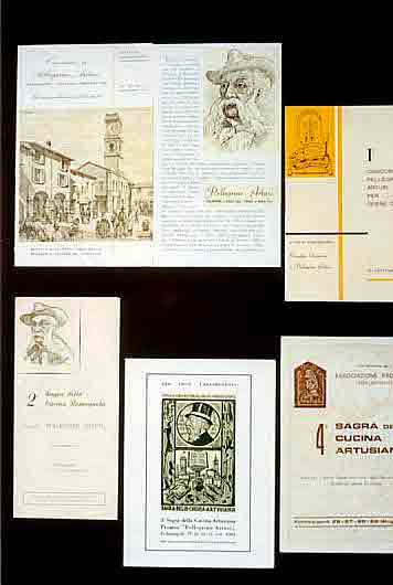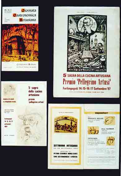 ....raccolta di depliant, locandine e disegni realizzati da Solari e/o dal Prof. Pietro Novaga in occasione delle diverse edizioni della Settimana Artusiana organizzate dalla Pro-Loco di Forlimpopoli.
