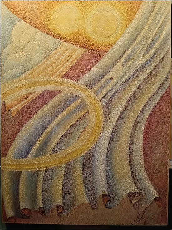 DELLA VERITA'. -L'ALCHIMIA E LA RICERCA DELLA PIETRA FILOSOFALE: L'essenza del pensiero alchemico è sintetizzato nella frase "nell'Uno il Tutto"; e nella tavola smeraldina di Ermete "Ciò che è in alto è come ciò che è in basso, e ciò che è in basso è come ciò che è in alto". La visione unitaria del Tutto implica la fondamentale unità del cosmo e e dei suoi quattro elementi (la Tetragonia di Empedocle), di conseguenza, totalità diventa sinonimo di completezza. A livello teologico l'unità del Tutto significa l'identificazione individuo-divinità. -ARNALDO DA VILLANOVA nel suo "De secretisa Naturae, stabilisce un parallelo tra la morte e la resurrezione di Cristo secondo la tradizione Cristiana, da un lato, e le due principali fasi alchemiche dall'altro: l'iniziale Nigredo che vede la morte della prima materia, cioè l'adepto e l'ultima la rubedo, che ne segna la rinascita sotto forma di pietra filosofale. ANCHE PIETRO BONO DA FERRARA (1330) vede una corrispondenza tra l'esito del magistero alchemico e la rivelazione divina; per lui, come per tutto il pensiero alchemico trecentesco, "l'Alchimia è sopra la natura e divina". -GLI ARTISTI ALCHIMISTI DEL RINASCIMENTO (Cosmè Tura, Leonardo, Michelangelo, Durer, Parmigianino, Beccafumi, Giorgione, Lorenzo Lotto, Guercino, ecc..., seguono le indicazioni di Arnaldo e Pietro.....ed io con loro. L'immortalità è conoscenza, è il riconoscimento dell'unità del Tutto. E' la consapevolezza dell'aspetto complementare e non conflittuale di ogni dualità (questo è l'insegnamento della luce Divina espressa nell'Aleph) -I FILI DELLA SPIRITUALITA' NELLA MIA ARTE SONO...:-Platone e il Timeo, lo Sefer Yetzirah, il Quarto Vangelo di Giovanni, il Terzo libro di Enoch, Arnaldo da Villanova, Pietro Bono da Ferrara, Gioacchino da Fiore e la nuova età dello Spirito, Pico della Mirandola. -LA MIA ESPRESSIONE ALCHEMICA: ....E LE MIE OPERE ISPIRATE ALLE VELATURE LEONARDESCHE (PDF) Dalle velature di Leonardo alle mie velature cesellate la distanza sembra breve. L'utilizzo di una tecnica complessa e raffinata da un senso di leggerezza e spiritualità a chi osserva l’opera grazie al rapporto che l’opera stessa instaura con la luce. La luce sfiorando la superficie della tavola lignea mette in evidenza la leggerezza dei toni e dei passaggi cromatici che sembrano velature ma in realtà sono soltanto l’insieme di bruciature e forature effettuate sulla pelle del legno a caldo (pirografo) e a freddo (dremmel) e poi unite ai pastelli colorati che vengono fissati a cera liquida. La superficie dell’opera così preparata viene poi modellata e velata dall’autore grazie ad una miriade di piccoli incavi che la luce sposa rendendo la materia sua complice in un legame inscindibile dagli effetti simili alle velature leonardesche. Le velature che Leonardo creava con i polpastrelli delle dita sono il medium fra la luce e il colore, se durante un restauro si asportano le velature l’effetto pittorico leonardesco perde quella caratteristica primaria che il il matrimonio con la luce produce e rende all’opera quel fascino e quel mistero che ritroviamo oggi solo nelle opere non restaurate o pulite. |